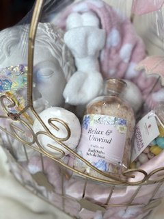 Jaimie loves gift giving and enjoys putting together a special package for each person she treats. No two baskets are exactly the same, as items are individualized to each person, occasion or basket.
